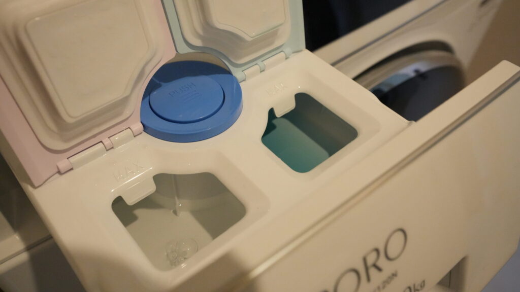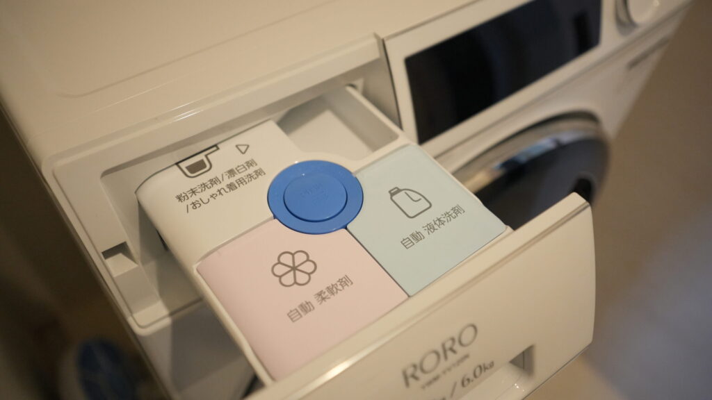 自動投入に関しては、洗剤や柔軟剤の各種によって量が規定されてるみたいなので、自分で設定する必要がある。