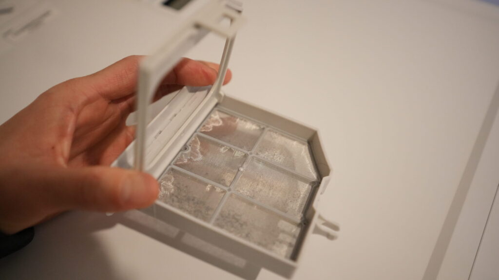 - 乾燥フィルター(埃): 取り出しやすく、パカっと開いてゴミを捨てやすい。