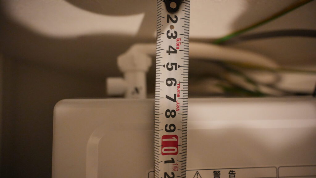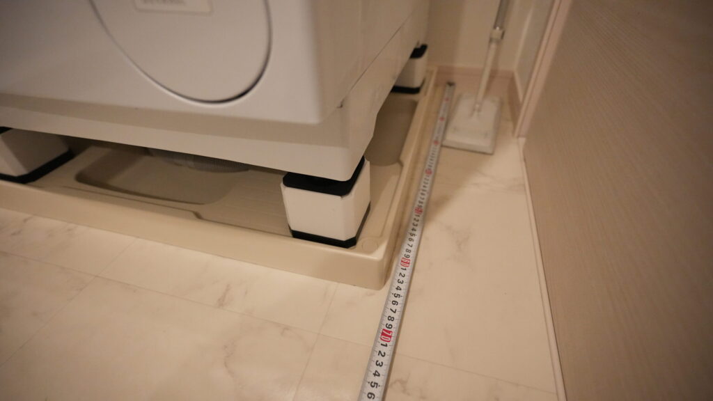 あと1cmくらい余裕があるため脱水の際に洗濯機が揺れても大丈夫と思われる。今のところ大丈夫。